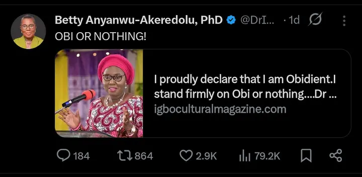 In a statement shared on her verified X social media account, Akeredolu declared strong backing for Obi as the preferred presidential candidate of the ADC-backed coalition, signaling her position with a firm and unambiguous message of support.
