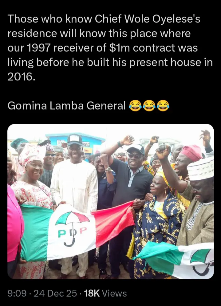In a post on his X handle on Wednesday, December 24, 2025, Olayinka scrutinized the Governor’s narrative of his rise to wealth, specifically mocking his claim of becoming a millionaire in his late twenties.