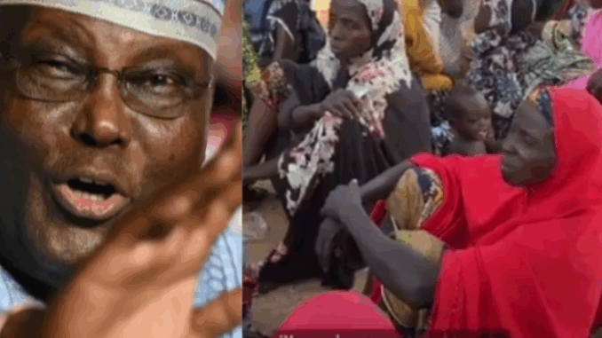 According to the video that Atiku Abubakar shared online, the people were displaced following renewed attacks from bandits and terrorists. In the video that surfaced, the people were seen sitting on the ground.