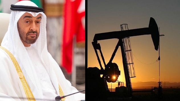 Images accompanying the announcement show UAE President Sheikh Mohammed bin Zayed Al Nahyan alongside a silhouetted oil pumpjack at sunset, symbolically linking national leadership to energy independence.