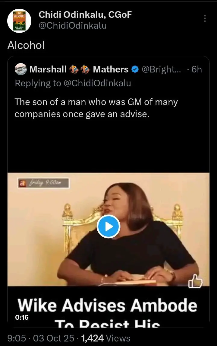 The video prompted a pointed and succinct reaction from human rights lawyer Chidi Odinkalu, who simply wrote “Alcohol” on his social media platform. This single-word post was widely interpreted as a wry commentary on Wike’s political reversal, humorously suggesting that the intoxicating allure of power can reconcile past rivalries. The remark also playfully alluded to the Minister’s known affinity for whiskey.