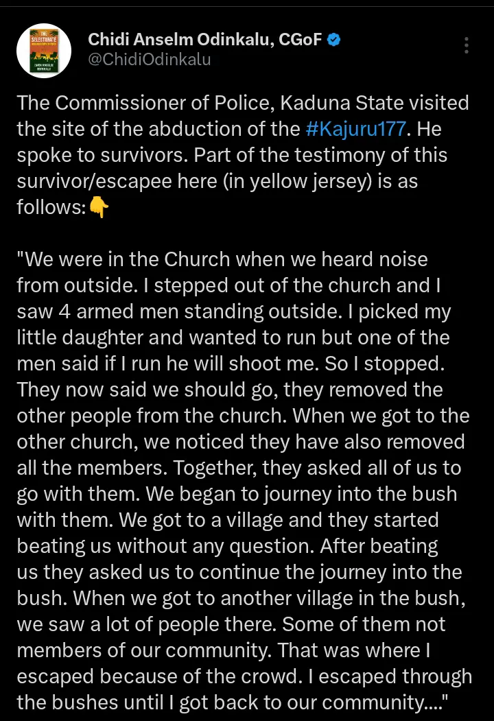 Chidi Odinkalu Reacts As Survivor Of Kaduna Abduction Narrates Escape To Police Commissioner