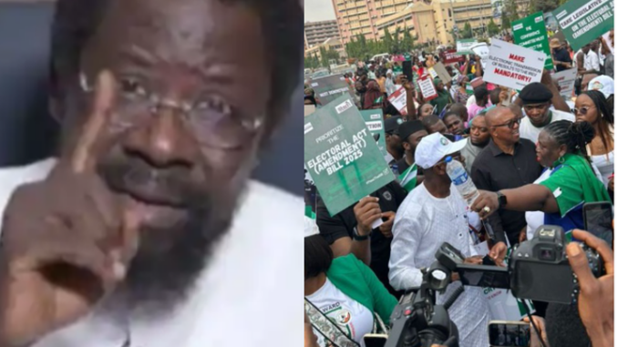Nigerian lawyer and human rights activist, Dele Farotimi has reacted after the former governor of Anambra state and Labour Party, LP, candidate in the 2023 presidential election, Peter Gregory Obi was spotted among those protesting.