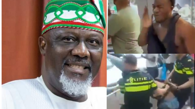 One of the chieftains of the African Democratic Congress, ADC and former lawmaker who represented Kogi West Senatorial District, Senator Dino Melaye has reacted to a viral video of some policemen in Amsterdam, Holland arresting a Nigerian.