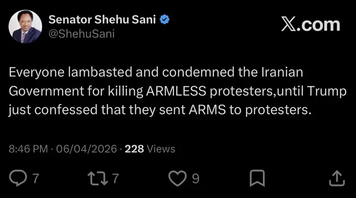 Former Nigerian senator Shehu Sani has stirred fresh debate on social media following his reaction to developments surrounding protests in Iran and comments attributed to former United States President Donald Trump.