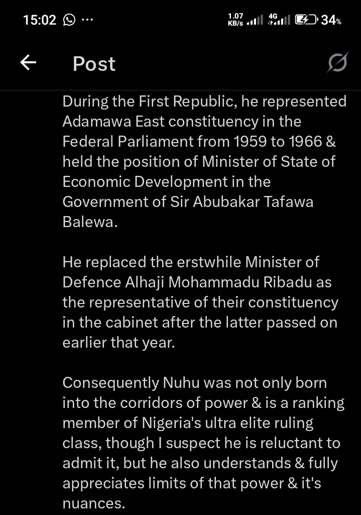 Fani-Kayode pointed out that Ribadu hails from a distinguished lineage of educated public servants, noting that his father, Alhaji Ahmadu Ribadu, was a First Republic parliamentarian and Minister of State for Economic Development.