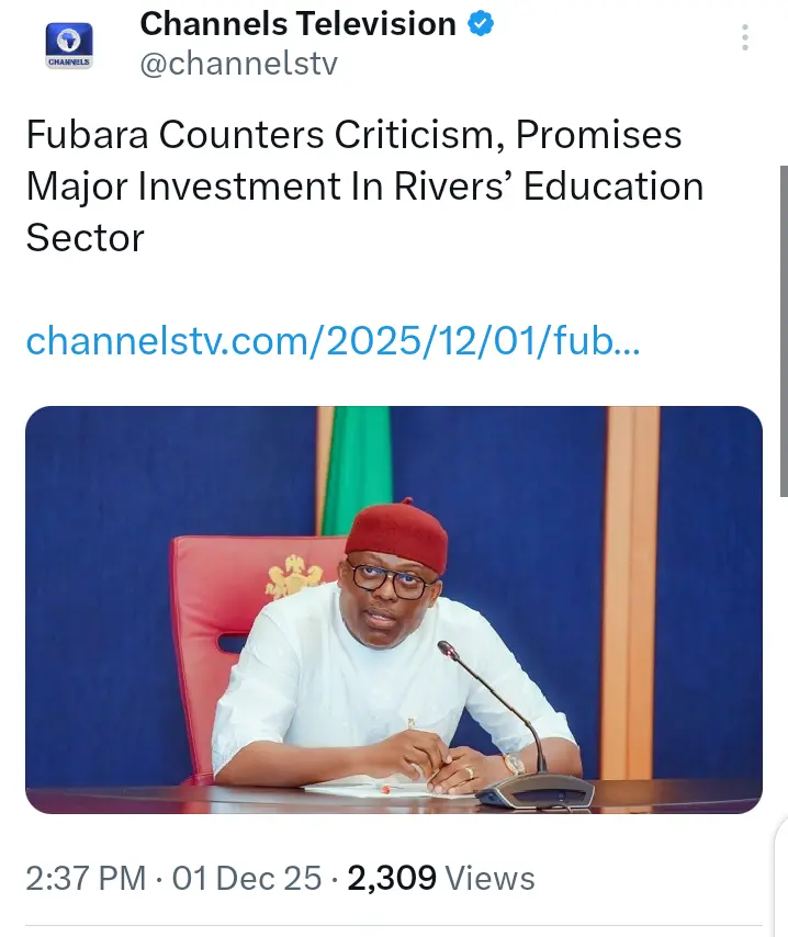 The reaction of the governor of Rivers state was contained in a report that was published on the official X handle of CHANNELS TV on Monday, December 1, 2025.