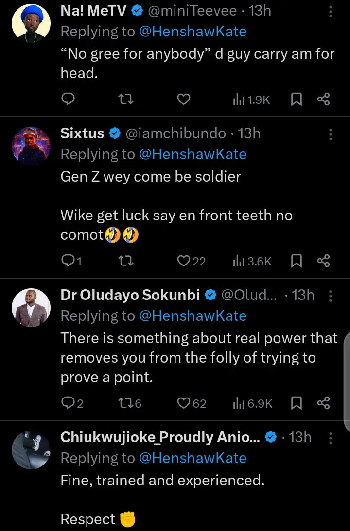 Social media users have taken to their official X account on November 11 to react to the statement that was made by Nollywood actress, Kate Henshaw after a young military officer, Lieutenant A. M Yerima stopped the FCT Minister, Nyesom Wike from accessing a land.