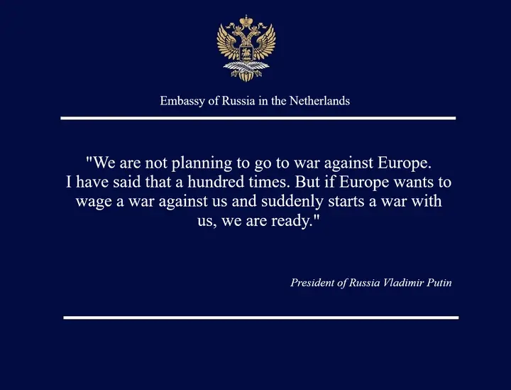 According to the embassy, such statements contribute to heightened tensions in Europe and risk pushing the continent further toward confrontation. It called on Dutch officials to “reflect on where such actions are leading the Kingdom,” a reference to the Netherlands, and cautioned against policies or public messaging that could fuel fears of an inevitable war.