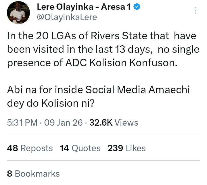 Lere Olayinka, the Senior Special Assistant on Public Communication and Social Media to the former governor of Rivers state, Nyesom Wike has spoken about what he observed after visiting some Local Govenment Areas in Rivers state.