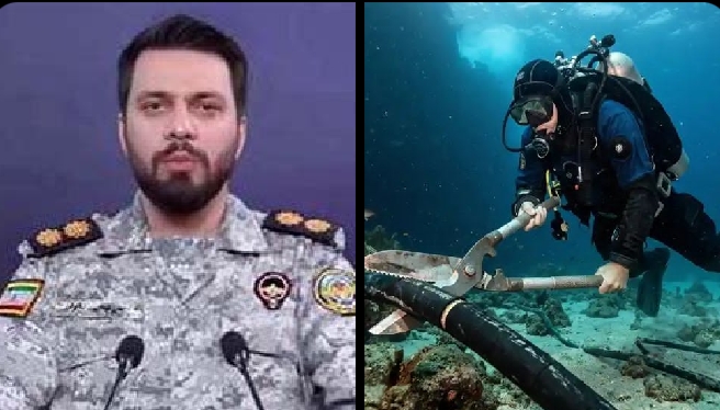 The post, shared by an account focused on politics and finance, included images of an Iranian military official at a podium and a diver severing a submarine cable, framing the threat as a deliberate strategic move to disrupt the digital backbone of the global economy.