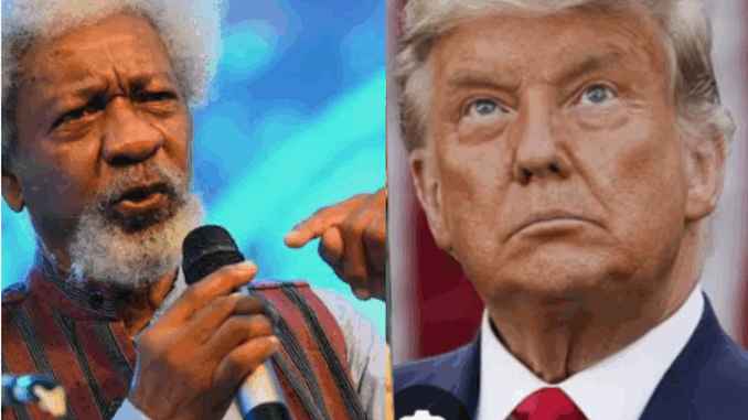 In the report that surfaced online, Wole Soyinka said he has written many plays about Idi Amin and now is the time for him to write about Donald Trump so he can restore his visa.