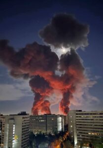 Large fires and thick smoke plumes were seen rising over Mehrabad International Airport in Tehran following what reports suggest were recent strikes on the facility. Images shared by BRICSinfo showed nighttime scenes of intense blazes illuminating the sky above the airport, which serves as Tehran’s main hub for domestic flights and also handles some military logistics operations.