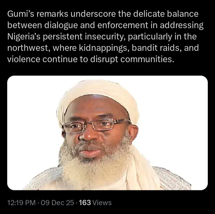 The statements from Sheik Gumi, which was widely condemned, indicated that urgent actions must be taken to address insecurity, as supported by Lere Olayinka.