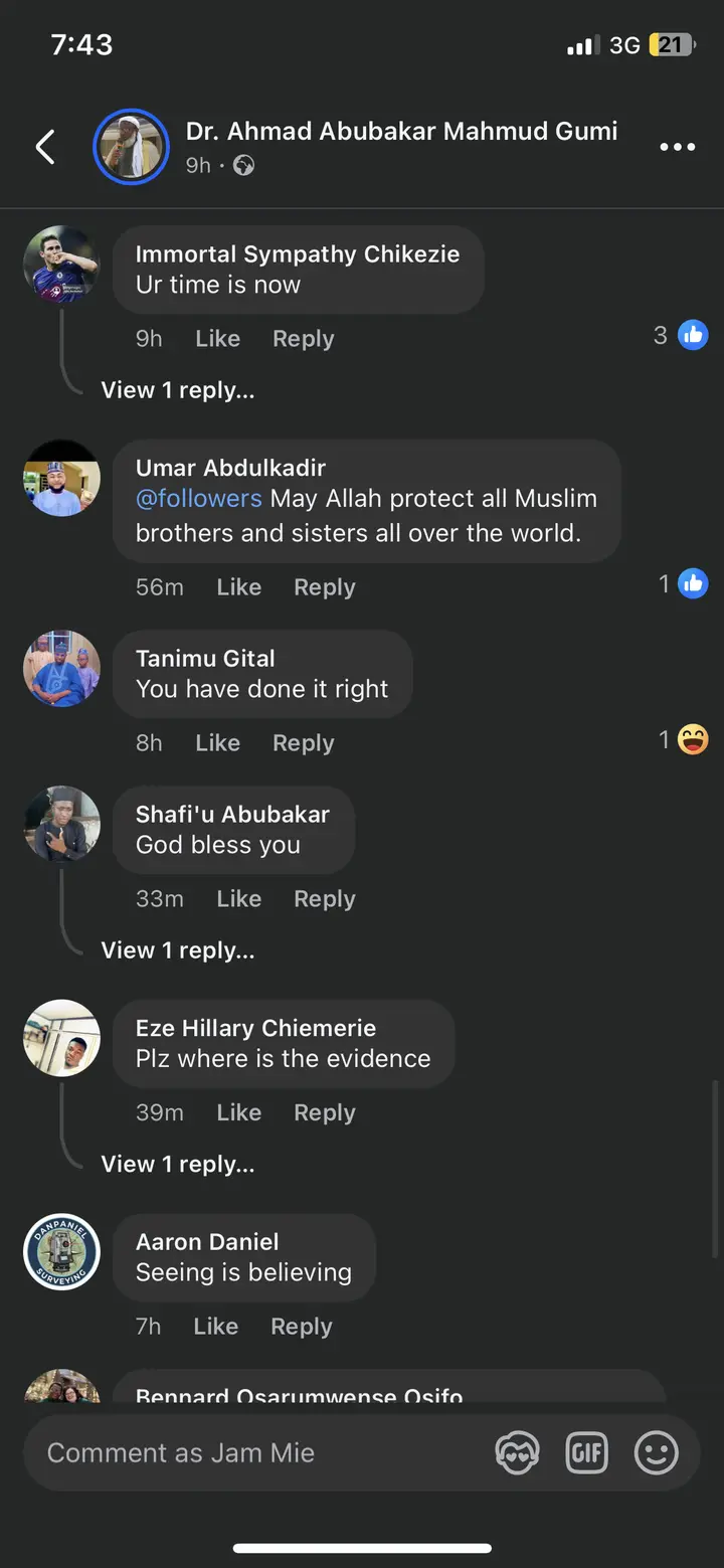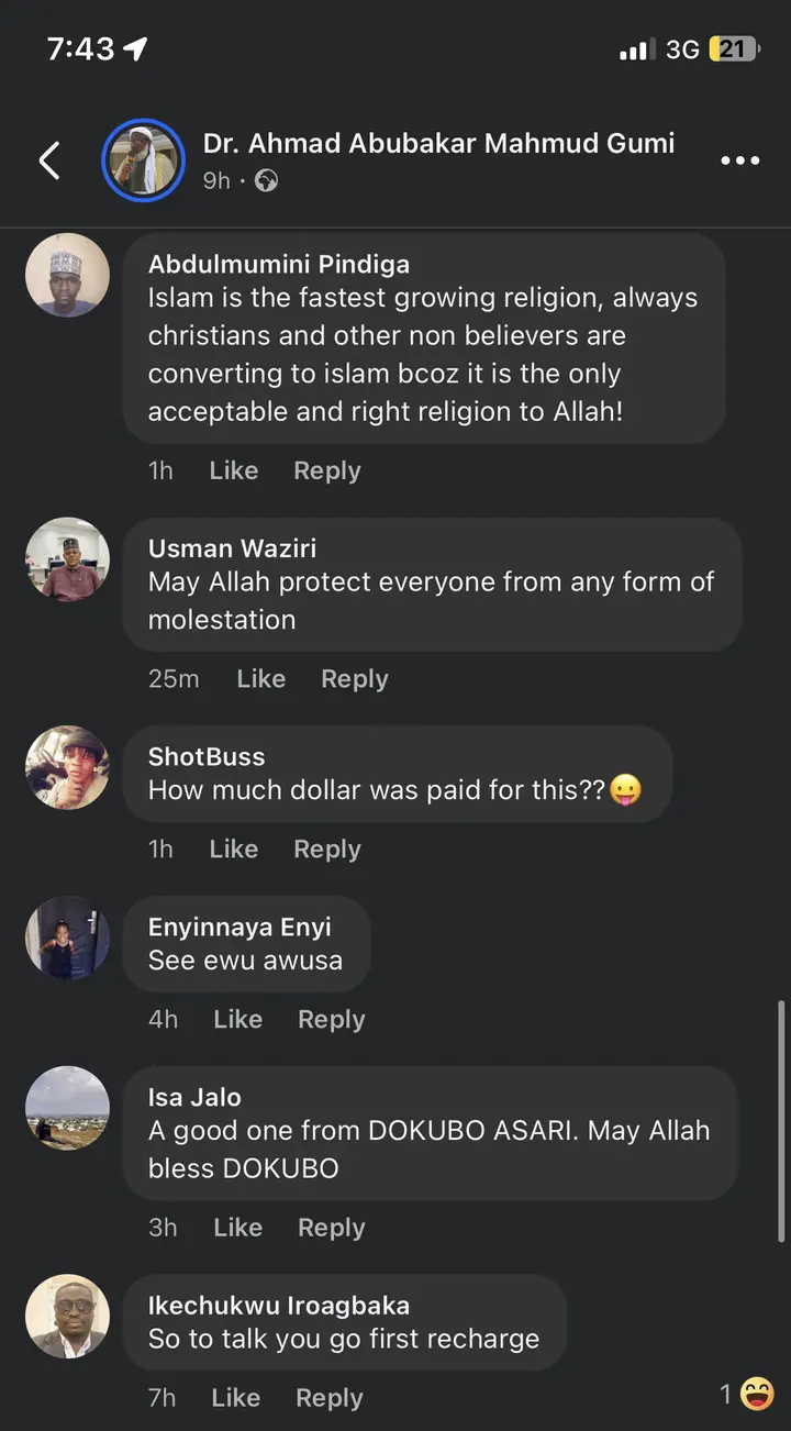 One supportive reaction read: “May Allah protect all Muslim brothers and sisters all over the world.” This comment reflects the sentiments of those who believe Sheikh Gumi’s claim highlights the suffering of Muslims and see his post as a call for protection and unity within the Islamic community. For such supporters, the cleric’s words resonate with broader fears of insecurity and targeted violence in different parts of the country.