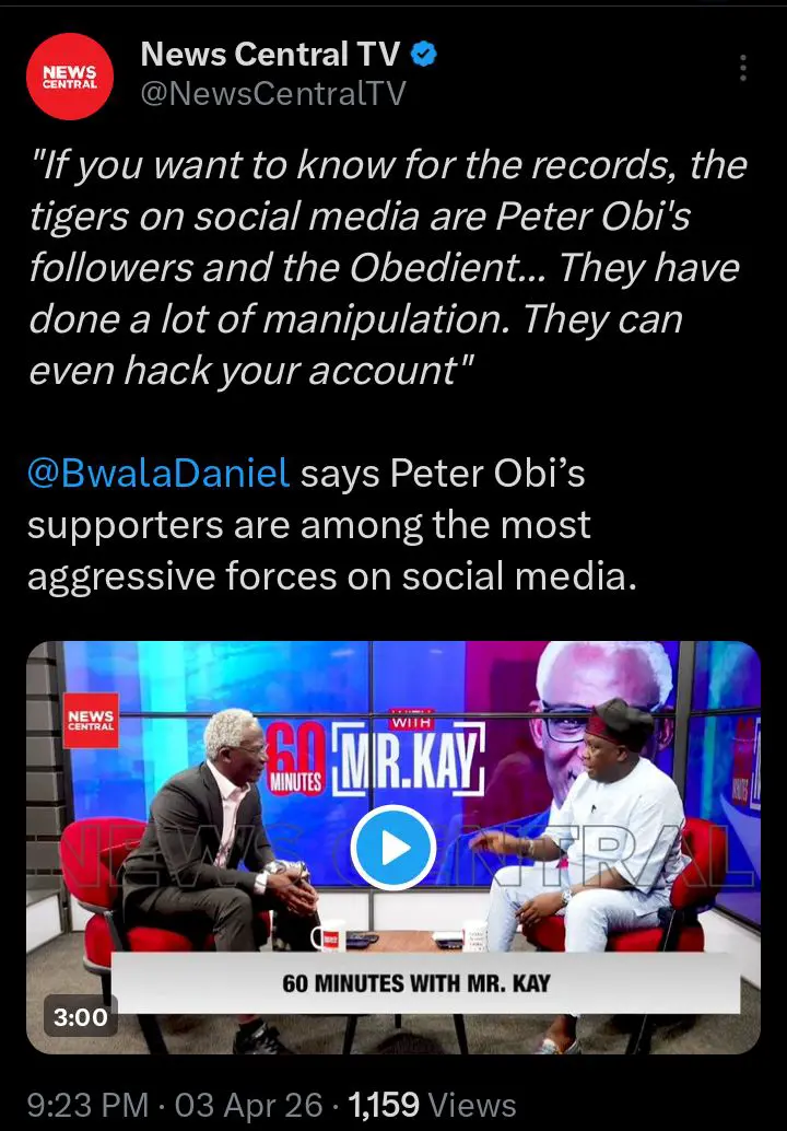 Speaking during an interview on News Central TV, Bwala alleged that Obi’s followers, popularly known as the “Obedient” movement, dominate online conversations and engage in coordinated activities capable of shaping narratives.