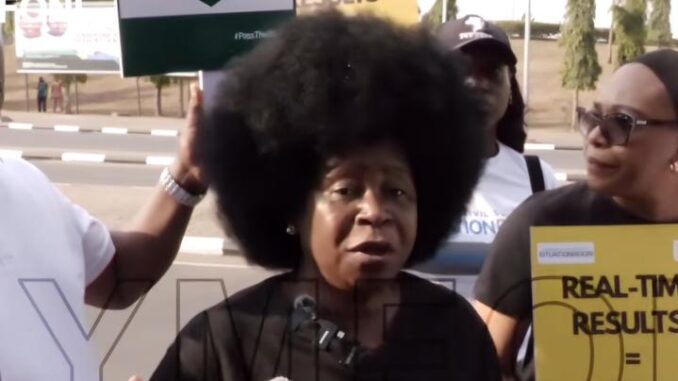 Human rights activist Ene Obi, speaking during a protest at the National Assembly building has called for electoral law amendments requiring lawmakers and officeholders who defect to other parties to vacate their seats.