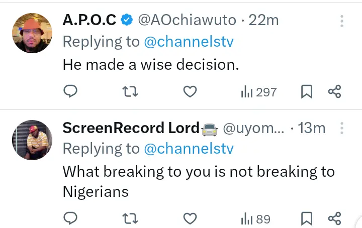 This announcement was contained in a report that was published on the official X handle of CHANNELS TV on Tuesday, December 9, 2025.
