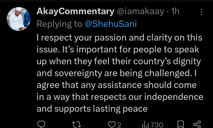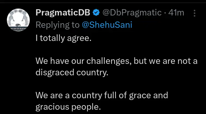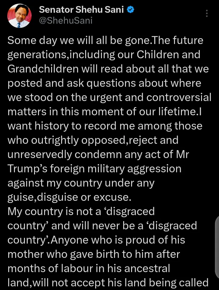Social media users have taken to their official X account to react after one of the chieftains of the All Progressive Congress, APC, Senator Shehu Sani told US President, Donald Trump why Nigeria can not be described as a disgraced country.