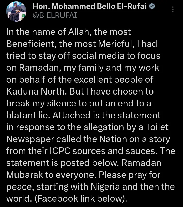 According to Bello El-Rufai on his official X account;