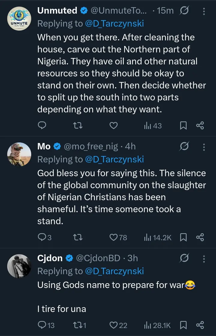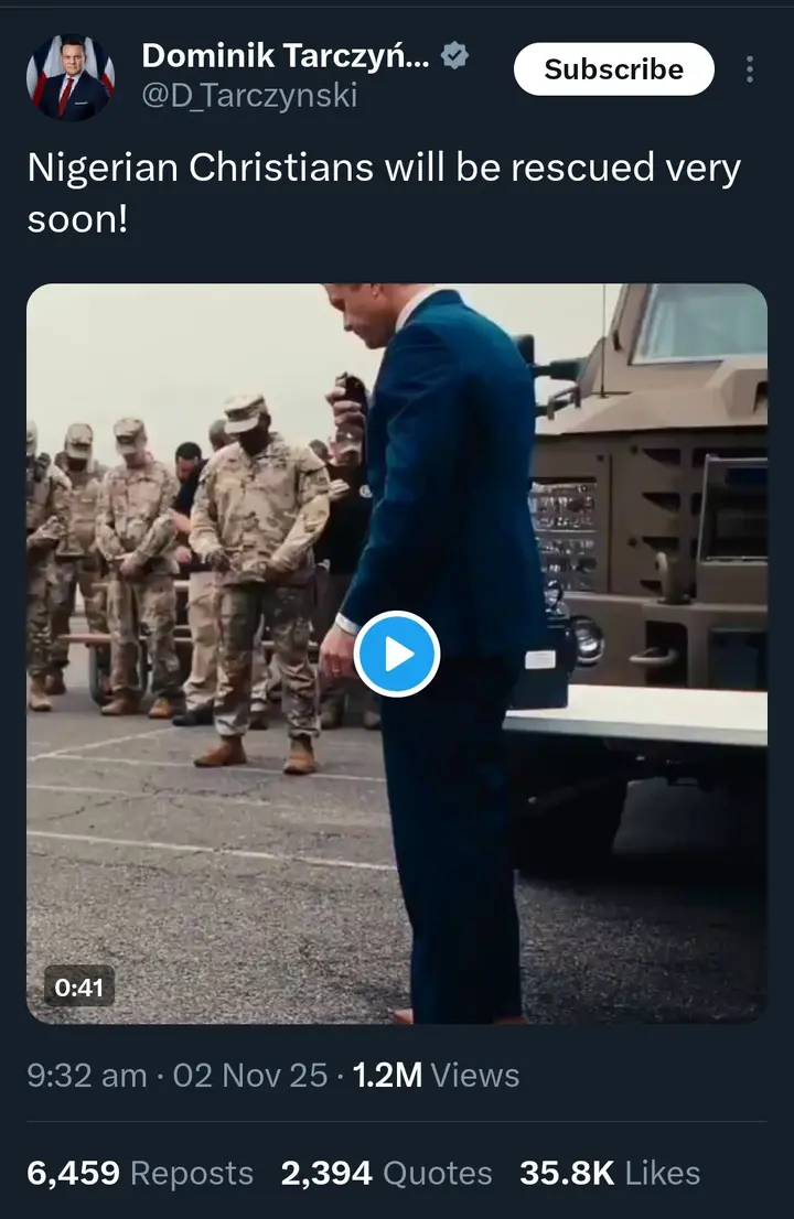 Tarczyński’s message has quickly gone viral, earning thousands of reactions and comments from Nigerians and global supporters who see it as both a call for divine intervention and a hint at possible international attention to the crisis.