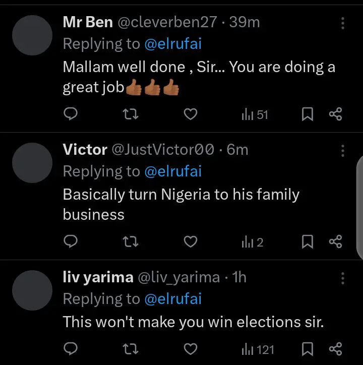 Following the post, reactions poured in from Nigerians across different political and regional divides. Some users commended El-Rufai for highlighting what they viewed as a legitimate concern about fairness and national inclusion in government decisions.