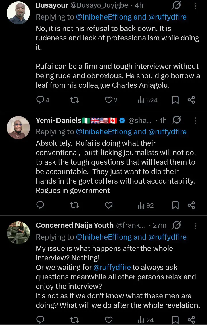 Another user took issue with what was perceived as Umahi’s condescending tone during the interview, referencing the minister’s attempt to bring up Oseni’s past traffic violation in what many saw as a diversionary tactic meant to discredit the journalist.
