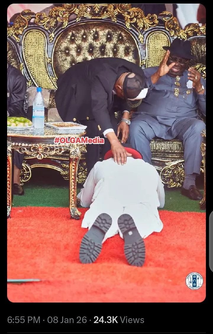 Reactions As New Photo Of Bonny Chairman Lying On The Ground To Greet Nyesom Wike Surfaced Online
