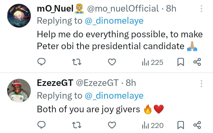 There have been several reactions from social media users after new photo of Nigerian lawyer, Senator Dino Melaye and the candidate of the Labour Party, LP in the 2023 presidential election, Peter Obi surfaced online.