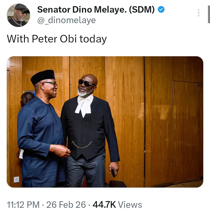 The photo was contained in a post that Senator Dino Melaye shared on his official X handle on February 26, 2026.