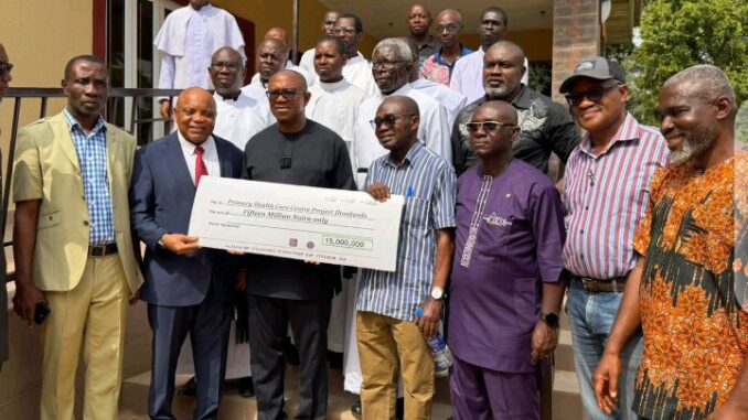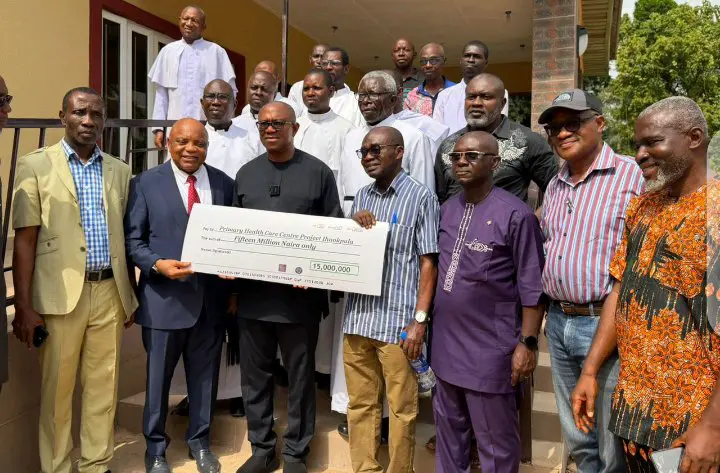 In the photos, Peter Obi is seen alongside several clergymen. The former governor revealed that his visit was to Amafor, Ihuokpala in Nkanu East Local Government Area of Enugu State, where he donated a generous sum of N15 million to support the construction of a new primary healthcare center. This contribution follows an earlier donation of N20 million he made for the same cause.