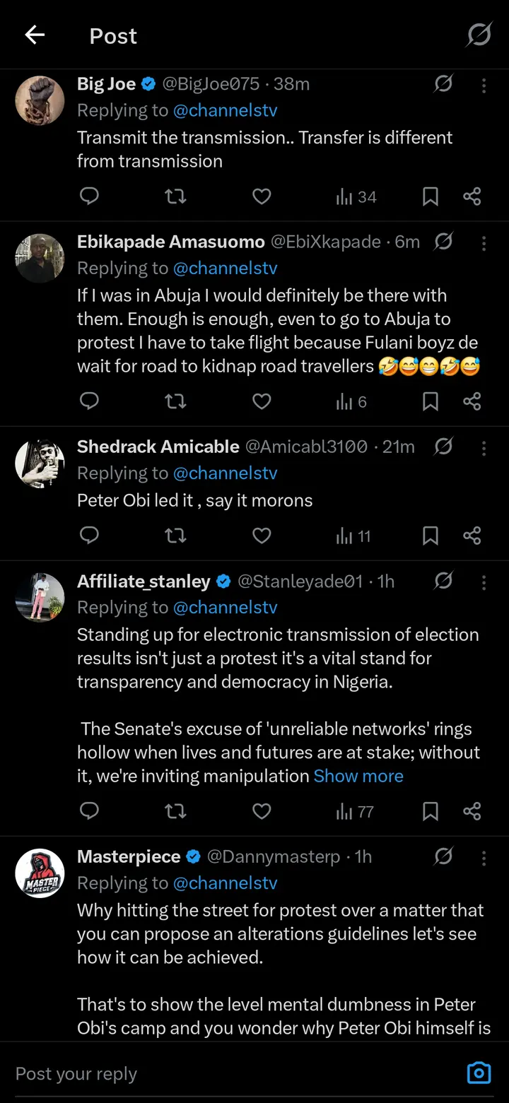 The protest drew reactions from supporters online, with some Nigerians expressing willingness to join if they were in Abuja, while others insisted that electronic transmission remains critical for credible elections. The demonstration reflects growing public engagement on electoral reforms, especially as debates intensify ahead of future general elections.