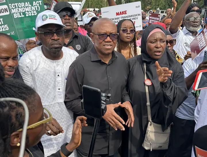 Peter Obi, Aisha Yesufu, and Yunusa Tanko were also present during the protest. Peter Obi, who spoke during the demonstration, insisted that electronic transmission was not complicated and should be allowed to operate normally within the electoral system.