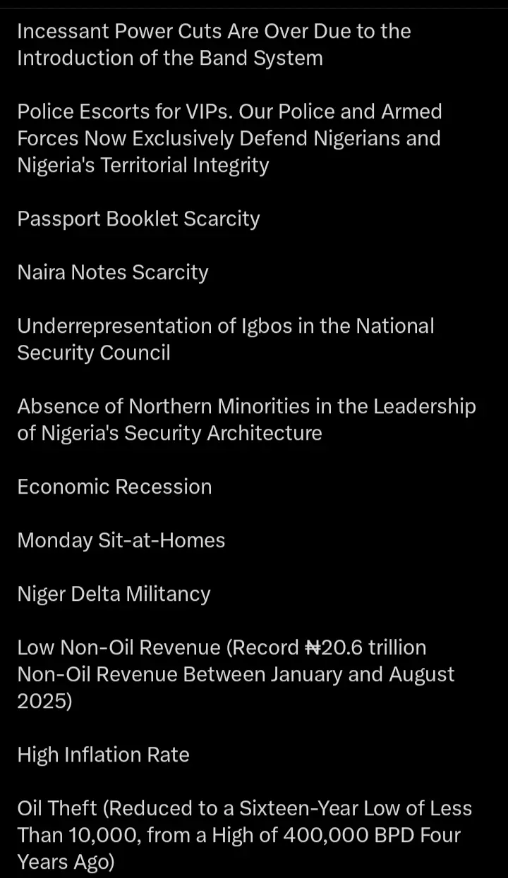 According to the statements which were shared on his official X handle, the list, which included incessant fuel scarcity during the yuletide seasons and ASUU strike, caught massive public attention as many believed he was spot on.