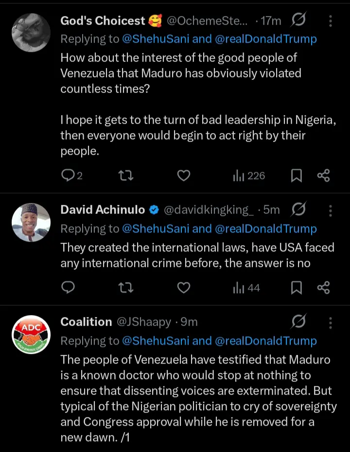 However, his arrest sparked diverse reactions, including from Senator Shehu Sani, a former federal lawmaker who condemned the military action by the United States in Venezuela territories.