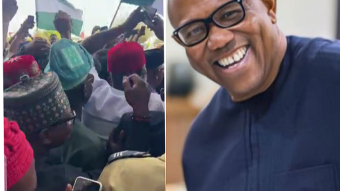 In the video that surfaced online, the people were seen singing and waving several flags after Peter Obi arrived.