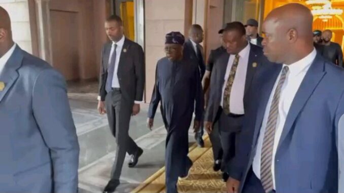 Checkout photo of President Bola Ahmed Tinubu leaving his hotel below;