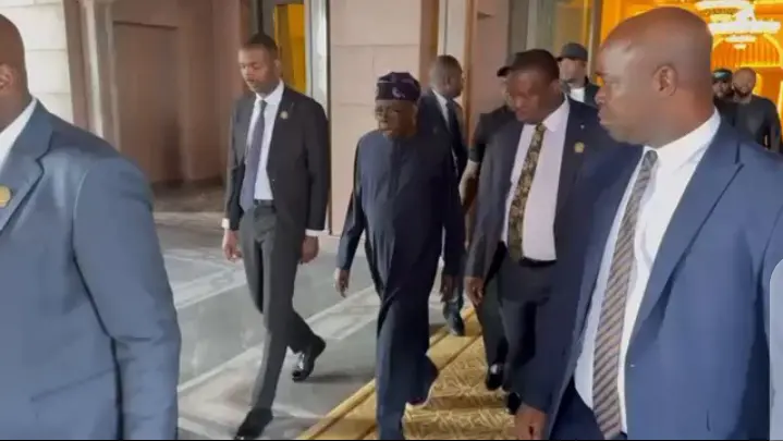 Social media users have taken to their official X account to react after a video which captured the moment President Bola Ahmed Tinubu was leaving a hotel surfaced online.