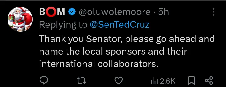 Social media users have taken to their official X account to react after US lawamker, Senator Ted Cruz announced that the next step is know who Nigerian leaders are.