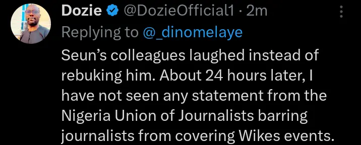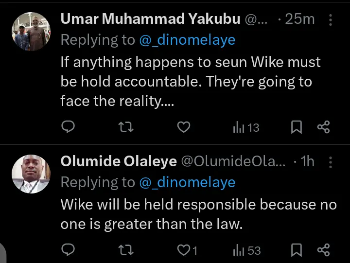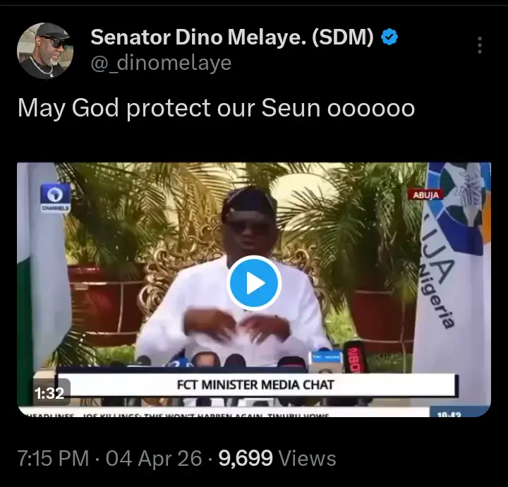 Social media users have taken to their official X account on Saturday, April 4, 2026 to react to the comment that was made by former Kogi lawmaker, Senator Dino Melaye after FCT Minister, Nyesom Wike allegedly threatened Seun Okinbaloye.