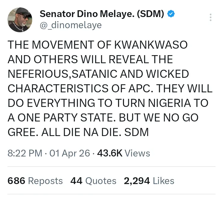 Here is what Dino Melaye wrote on his official X handle;