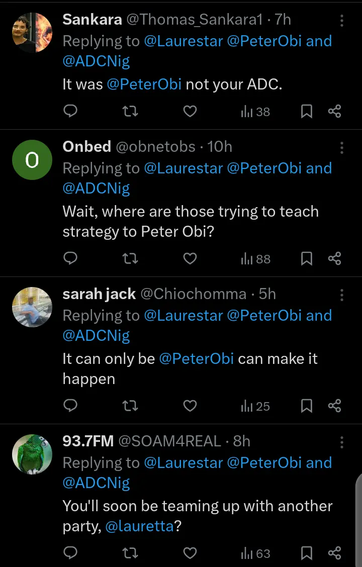 Social media users have taken to their official X account on January 29, 2026 to react to the statement that was made by Nigerian politician and former presidential aide, Lauretta Onochie after she saw a large crowd following the former governor of Anambra state, Peter Obi during a rally in the Federal Capital Territory, FCT, Abuja.