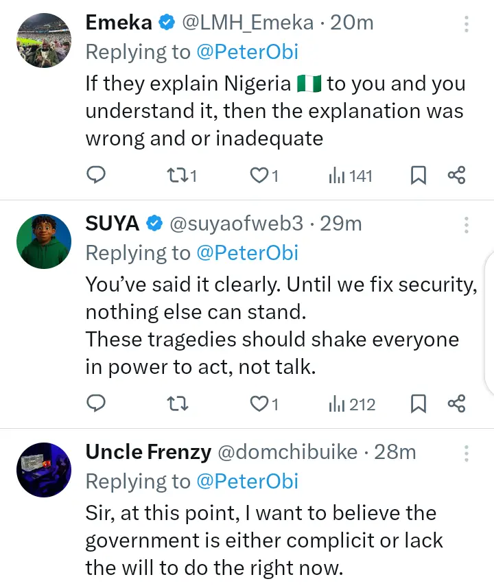 Several reactions have trailed the statement that was made by the former governor of Anambra state and Labour Party, LP candidate in the 2023 presidential election, Peter Gregory Obi after gunmen attacked a church in Anambra state.