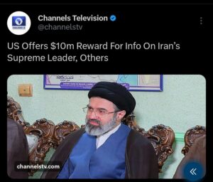 The US State Department offered a $10 million reward on Friday for information about Iran’s new supreme leader, Mojtaba Khamenei, and other top officials.