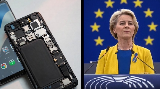 Images circulating alongside discussions of the policy show a smartphone with an exposed, swappable battery, as well as European Commission President Ursula von der Leyen, highlighting the political backing behind the reform.
