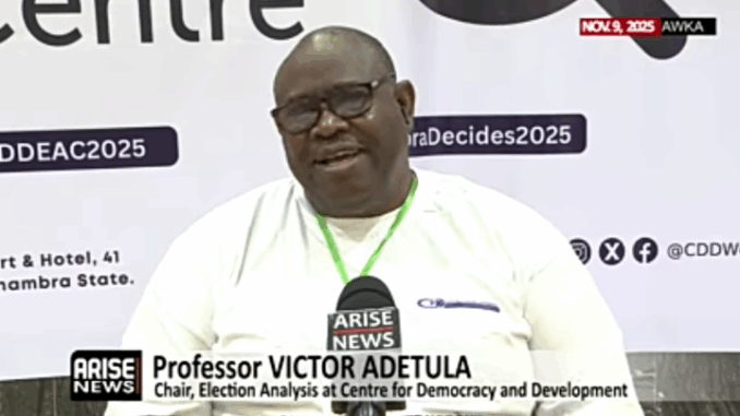 In a recent interview shared by Arise News, the Chair of Election Analysis at the Centre for Democracy and Development (CDD), Professor Victor Adetula, analyzed the outcome of the just-concluded Anambra State governorship election and its wider political implications.
