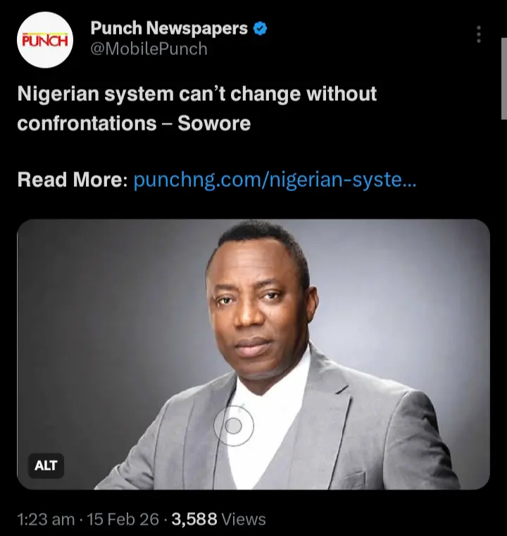 Human rights activist and former presidential candidate, Omoyele Sowore, has said the country’s socio-political system cannot experience meaningful change without confrontation, insisting that citizens must be willing to disrupt structures that promote corruption, poverty and injustice.