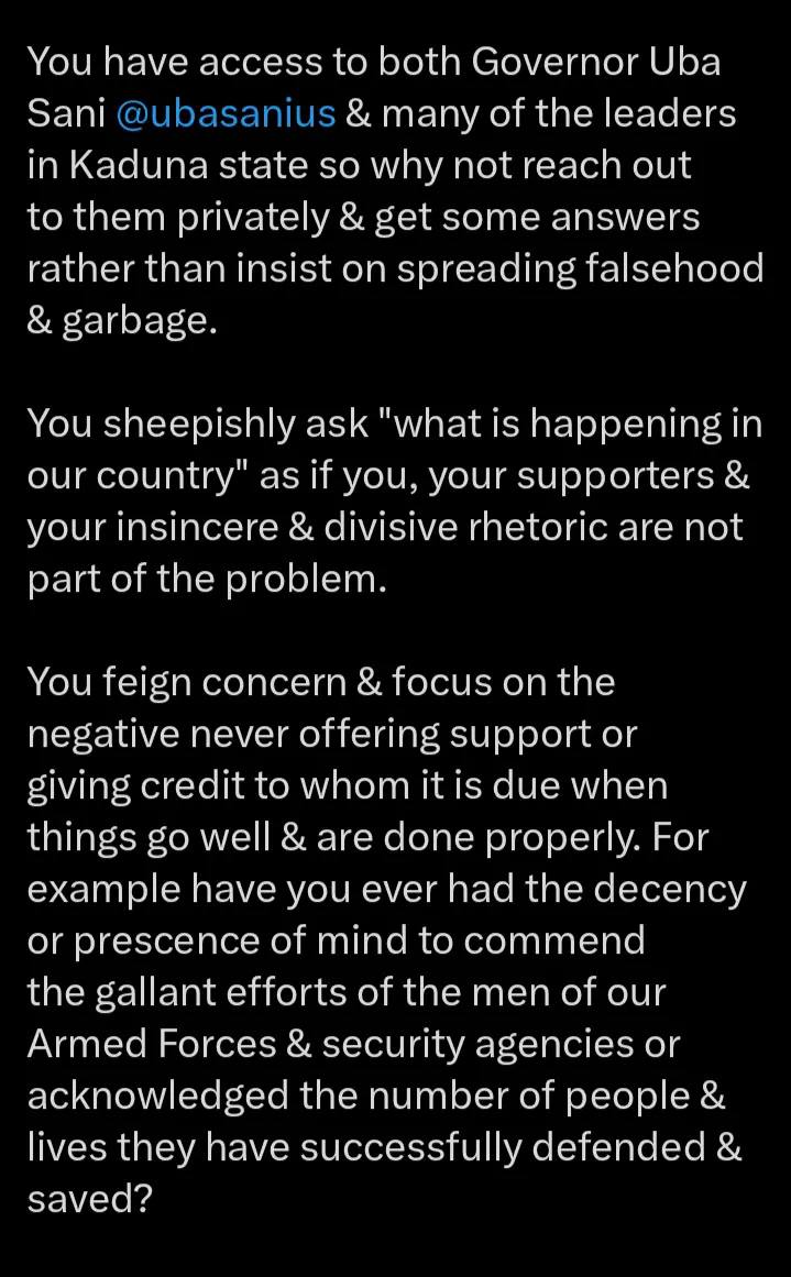 He argued that Obi should have privately consulted Governor Uba Sani rather than spreading what he termed falsehood and garbage.