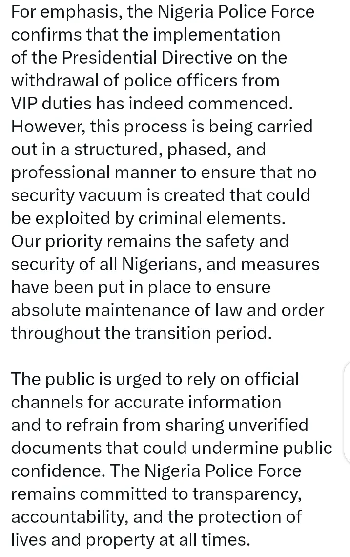 The NPF clarified that the document claiming that police officers have been withdrawn from Nyesom Wike and other VIPs is fake.