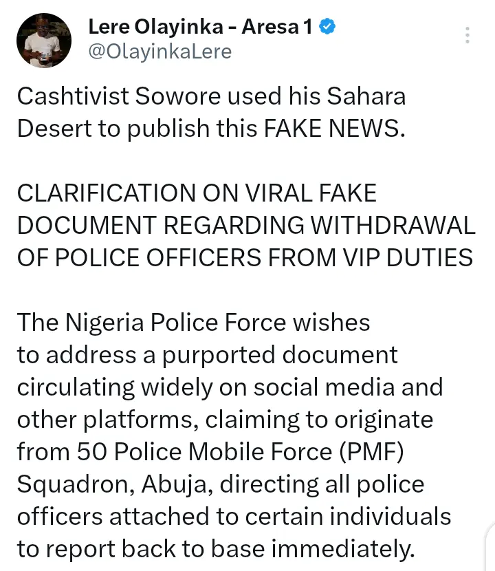 However, Lere Olayinka has now shared his thoughts after the report surfaced online. In a post that he shared on his official X handle, he said Omoyele Sowore used his media platform to publish fake news.